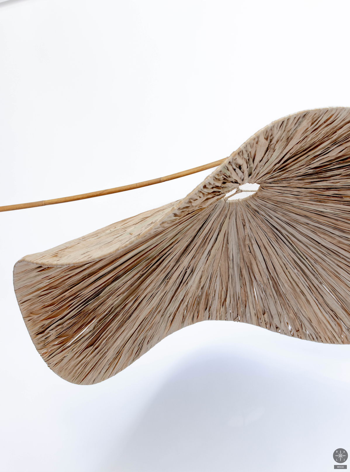 A handmade lampshade made of raffia from Bali is a natural, light and cozy light-emitting interior accent.