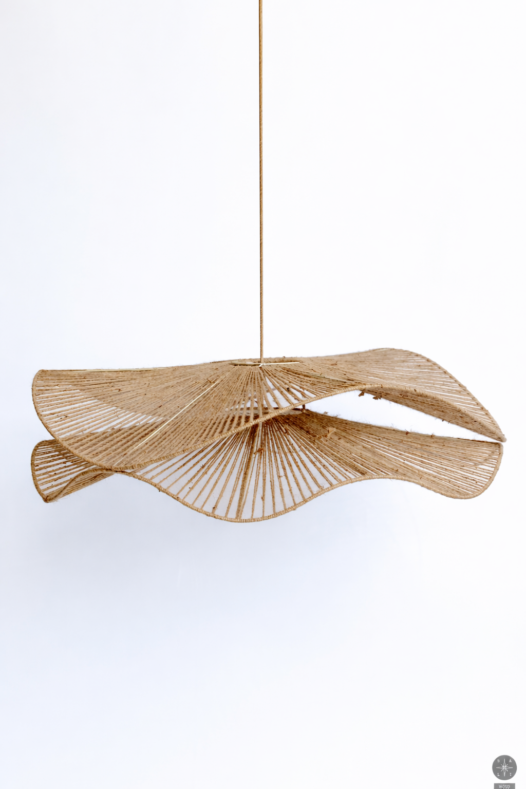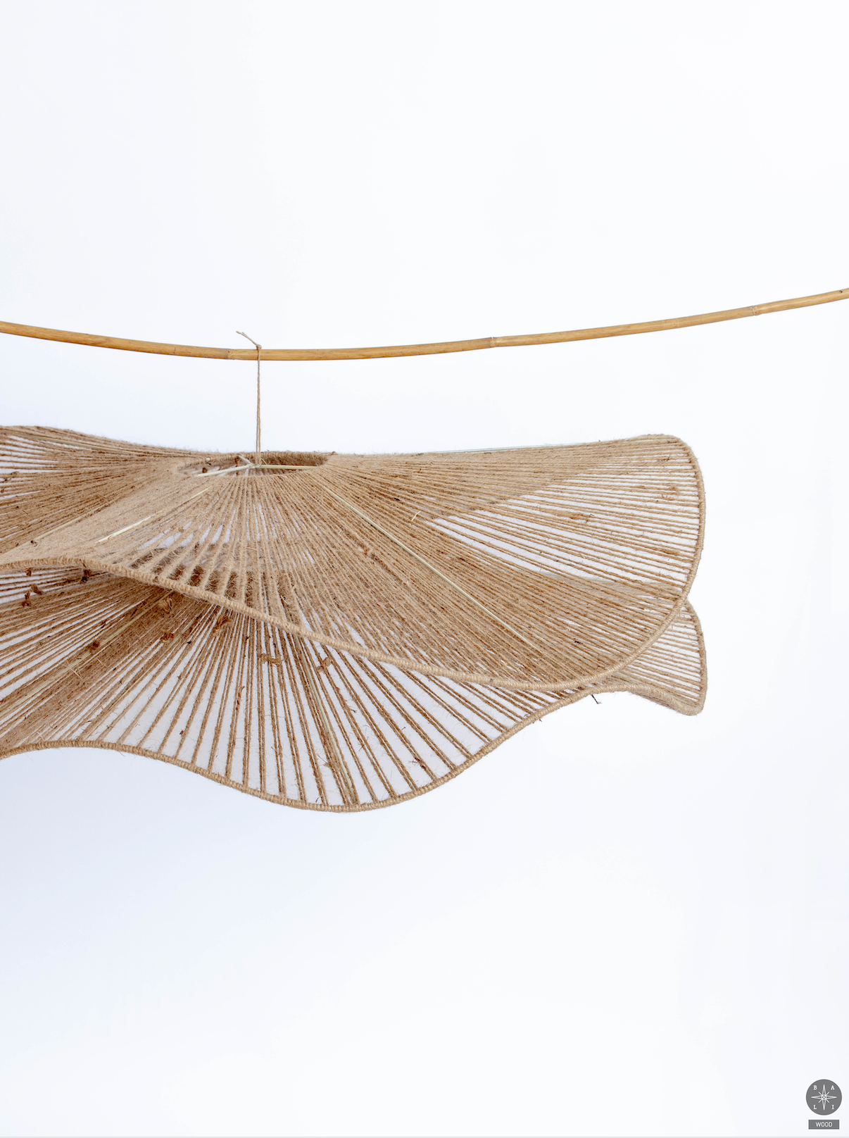 A handmade lampshade made of raffia from Bali is a natural, light and cozy light-emitting interior accent.