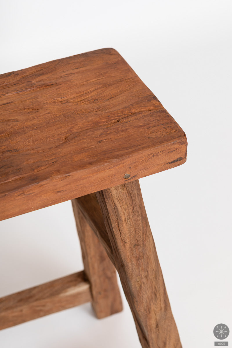 A handmade teak wood bench from Bali is a natural, sturdy and stylish accent for your home interior.